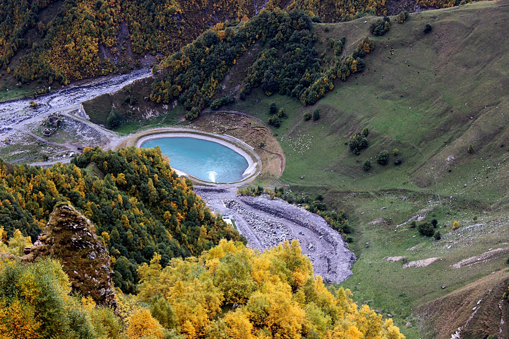В 70 км к северу от Тбилиси на реке Арагви появляется Жинвальское водохранилище, производящее грузинскую столицу воды и электричества. Плотина на Арагви была построена в 1985 году, ее высота – сто метров, ширина – четыреста метров. Объем воды в водохранилище составляет более полумиллиарда кубических метров.